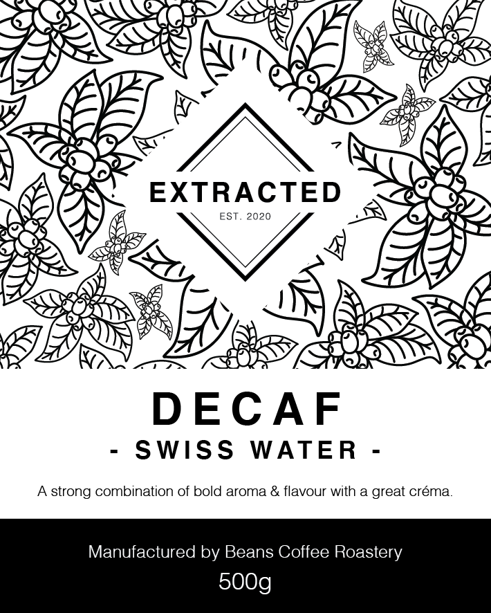 This Water Decaffeinated Coffee (not chemical) contains a blend of premium coffees selected for blending characteristics. What makes this blend stand out is its strong combination of bold aroma and flavour with a great Créma.